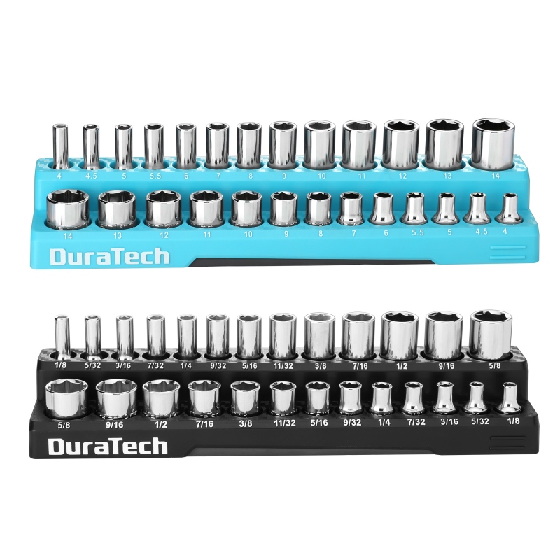 2-Pack 1/4"Dr. Metric+SAE Magnetic Socket Organizer Set