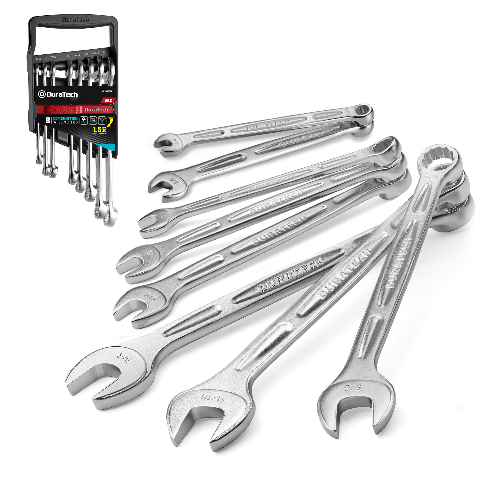The wrenches set covers 8 commonly used SAE sizes including:5/16”,3/8”,7/16”,1/2”,9/16”,5/8”,11/16” and 3/4”, which are able to meet most repair needs in daily life.