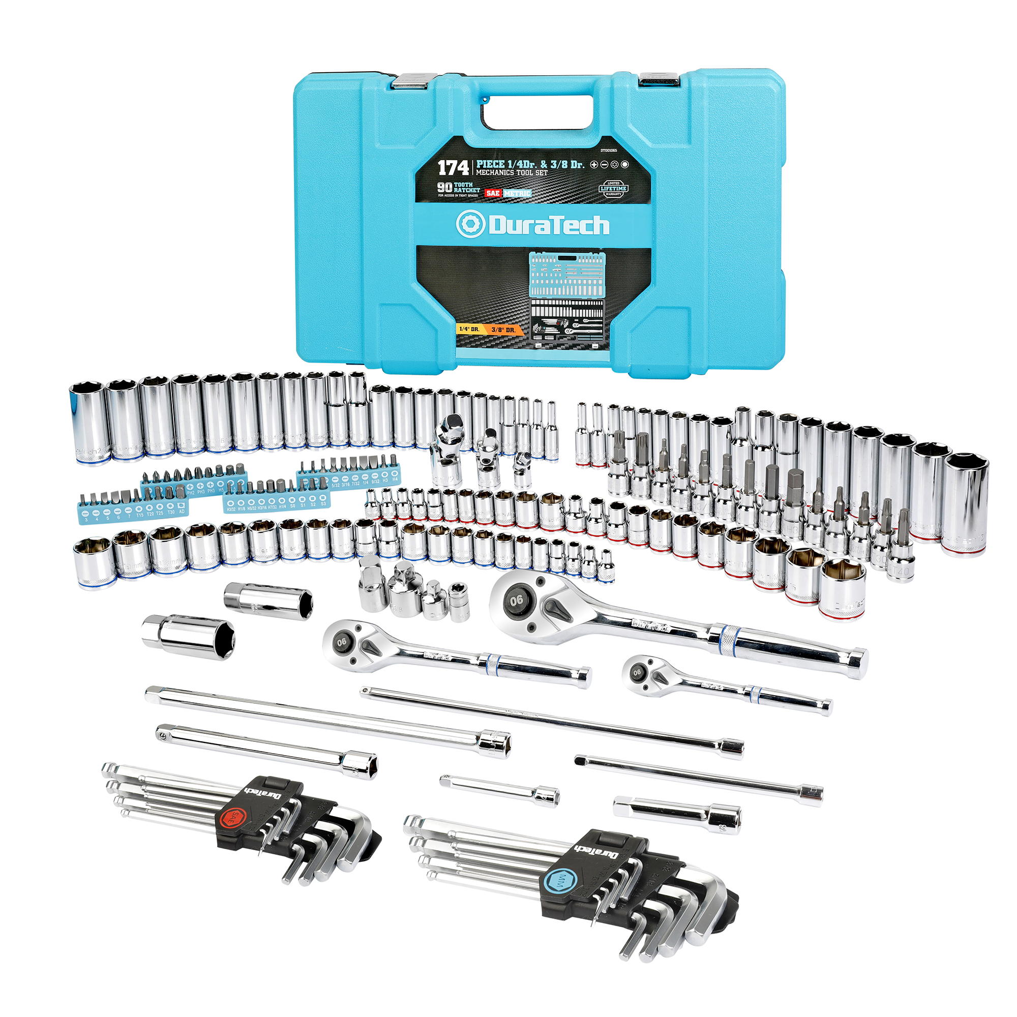 11pcs 1/4 Dr. 6-PT. Sockets: SAE 5/32, 3/16, 7/32, 1/4, 9/32, 5/16, 11/32, 3/8, 7/16, 1/2, 9/16;11pcs 3/8 Dr. 6-PT. Sockets: SAE 1/4, 5/16, 3/8, 7/16, 1/2, 9/16, 5/8, 11/16, 3/4, 13/16, 7/8